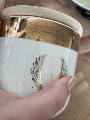 I was disappointed to see the gold details on each of these jars was wildly inconsistent, the largest of them looks wet/smeared across the top gold band. At a lower price point I wouldn't be surprised, but at over $10/jar that is insufficient.