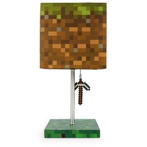 - AUTHENTIC IN-GAME DESIGN: Minecraft desk lamp features a removable shade that looks like the game's iconic grass block. Comes with ball chain cord pull shaped like a small pickaxe.