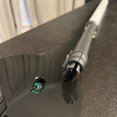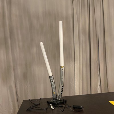 Standing almost 2 feet tall, this Star Wars Ahsoka Tano's Dual Lightsabers Table Lamp is modeled after the shoto-style lightsabers Anakin Skywalker's padawan wields in the era of the Disney+ series Star Wars: The Mandalorian. The look of her distinctive white blades is achieved with energy-efficient long-lasting LED bulbs. USB-powered, this lamp looks great plugged into your computer and displayed on your desk or in any power outlet provided you have a USB adapter. With her new solo series, Ahsoka Tano's lightsaber lamp is a fun addition to any Star Wars fan's collection.
