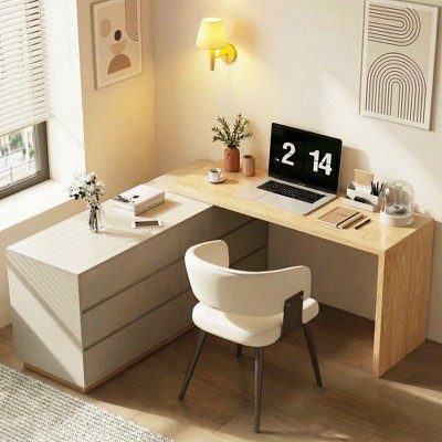 Ulsan Computer Desk Light Gray - Boahaus: Home Office, L-Shaped, Spacious Work Surface, Storage Cabinet