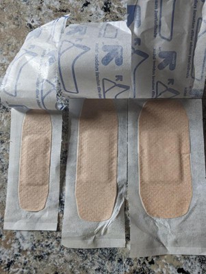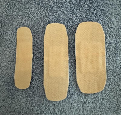 These were pretty decent bandaids! Three different size bandaids. Personally, i think the sizing might be different then typical bandaids. The texture feels like a fabric mixed with some of the typical plastic bandaid. Stayed on most of the day.