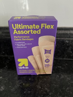 The 20-Count Ultimate Flex Assorted Bandages from up&up™ are a great choice to have on hand for protecting minor cuts, scrapes and burns. The fabric moves and stretches with skin for more comfortable coverage and better breathability, while a four-sided seal provides a snug fit. Keep this pack of 20 assorted-size adhesive bandages in your bathroom for home use, or take them on the go in your car or purse to treat minor wounds on the go.