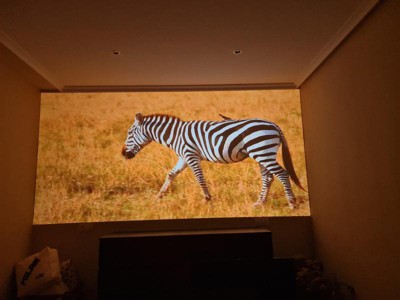 [This review was collected as part of a promotion.] I am really satisfied with the performance of the projector. Both the image and the sound are really good, even in not entirely favorable conditions, the layout of my room forces me to a lateral projection, and also with a vertical tilt, this undoubtedly affects the focus of the image, but the ultimea poseidon e40 solves the situation without problems, as can be seen in the videos and photographs. I have also set the specifications to the limit, the projected screen in my case is 130 inches, the recommended limit in the specifications is 120, logically this will affect the brightness but once again I have to say that I am satisfied with the result, even In daylight conditions the image brightness is sufficient, without requiring total darkness in the room. I can say that I totally recommend the projector, movies and series are enjoyed on another level.