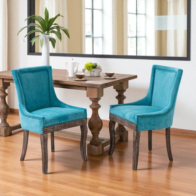 Ultra Side Dining Chair,Thickened fabric chairs with neutrally toned solid wood legs, Bronze nail head,Set of 2