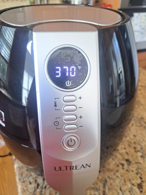 This Ultrean Air Fryer doesn’t take up to much counter space. It’s very quiet when running you can barely hear it which is a plus! It’s super simple to understand and use. I cooked breaded mushrooms in it the first time and it turned out perfect and the food was good. It cooked it all the way through and didn’t burn. It was very simple to get out and clean.