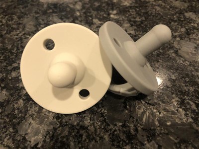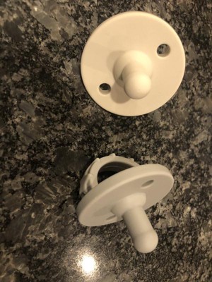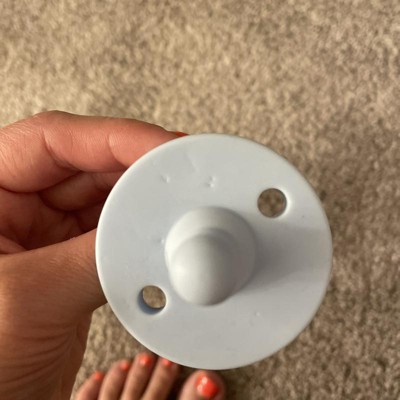 The design of these pacifiers makes no sense, especially for babies under 6 months. The handle is so heavy and the pacifier part is so small it falls out of my baby’s mouth in about two seconds every time.