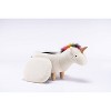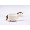 Bring this fantasy filled unicorn to your child's space! It will provide years of storage and enjoyment. This Unicorn ottoman will make for a memorable statement in any bedroom or play area to inspire creativity and imagination. The back of this piece is removable and reveals an interior storage space so your child can store blocks and other small toys, while the small wood peg feet contribute to the overall character of each animal and provide stability to the ottoman