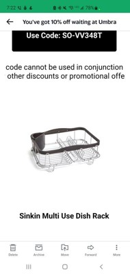 Umbra 11.3" Sinkin Multi-Use Rack Black/Nickel: Steel Dish Drying Rack, Hand Wash, 5 Year Warranty