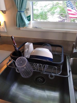 This dish drainer is perfect for smaller kitchen . Keeps the counter free of clutter.