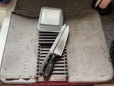 I love this dry mat for dishes. It has a low profile and when it needs to be cleaned, just pop it in the washing machine. I have two of these, so when one is drying, I can use the other one.