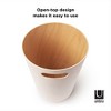 The Umbra Woodrow trash can is a stylish and functional addition to any room, combining aesthetic appeal with practicality. Its unique woodgrain finish and various color options allow it to blend seamlessly with different decors. Guests appreciate its lightweight design, easy-to-clean surface, and the convenient handle for emptying. With a perfect size for bedrooms and bathrooms, this trash can elevates the look of waste disposal while encouraging a cleaner environment.