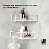 Add elevated storage to your bath or shower space with Cubiko Corner Bins . These non-damaging shower storage caddies have a modern, metal design, making them easy to integrate with a variety of decor styles. Easy to install, Cubiko includes non-damaging, waterproof adhesive strips that can be applied on various surfaces such as tiles, drywall, concrete, etc. (does not work on porous surfaces). Each bin has a max load of 10 lbs (4.5 kg) and is made of rust-free metal. Includes two metal hooks to hold loofahs, small towels, and more. Measures 9.05 x 9.05 x 3 inches (23 x 23 x 8 cm). This corner bin is made with an eco-friendlier finish. It produces 85% less water and solid waste than traditional electroplating finishes. ⓘ Non-Damaging Adhesive Installation: Completely non-damaging to your tiled walls. Cubiko includes a strong adhesive backing that can be applied on various surfaces such as tiles, drywall, concrete, etc. Surfaces must be smooth and clean for mounting. Warning: Surface damage may occur if adhesive mounting is removed from drywall, concrete, wallpaper, and porous surfaces.
