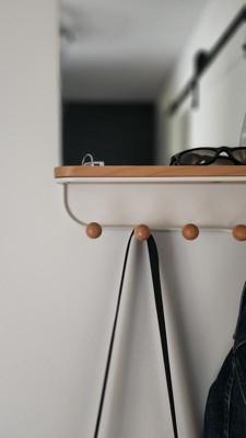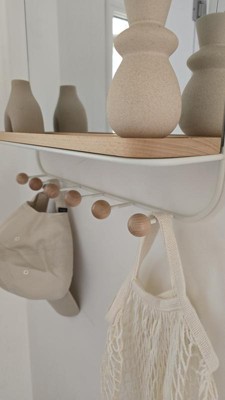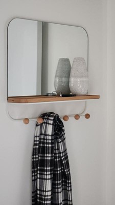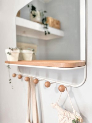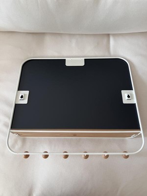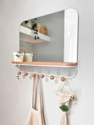 Umbra Antique Mirror With Hooks: Wall Shelf with 6 Hooks, White Decorative Floating Shelf, Wood & Metal Frame, 16" x 18"