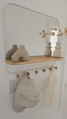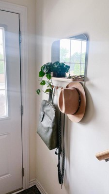 Absolutely love this gorgeous mirror! The shelf and hooks really add a lot of options for decor and plants!