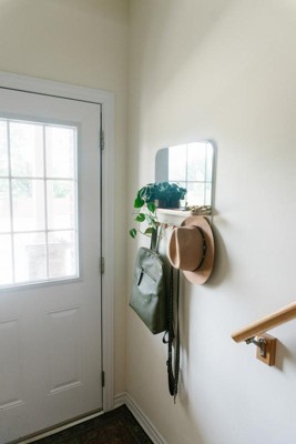 I absolutely love this piece! The combination of the mirror, shelf, and hooks was the perfect addition for our tiny entryway. The curved mirror adds so much interest, and I love the overall functionality.