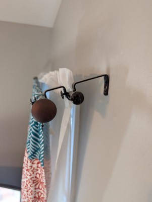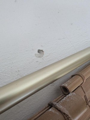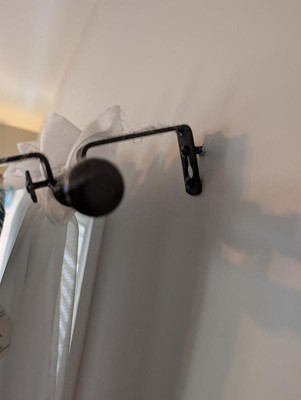 The top screws of each bracket is hard to install because of the curved dip of the arm to hold the rod. The rods scratch very easily. Installed one and opted to buy different rods instead of installing all three that I bought for the bedrooms.