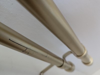 Expensive piece of rubbish that continually falls down ripping off parts of my wall. I have never been happy with an umbra product, and add this to the list. The rod was scratched trying to install it, and when I finally did get it installed on the wall, the awful quality of anchors that they provide couldn't withstand the completely normal curtain weight and ripped off my wall. I was unhappy with this product even before it kept falling off my wall which required my repair. By the way. They sell it in a long length, but for the rod to be long you have to extend it, and the ends of the curtains continually get caught on these jagged ends. Awful product, and awfully expensive.