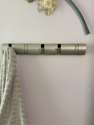 We have this flip wall hook in two lengths and colors now - one for our entryway and one for the bathroom. We love the sleek look and how the hooks tuck away if they're not in use. One funny drawback - and the reason I gave this a four star review - we have to show people they can flip out the hooks to access them. Otherwise, our guests try to hang all their coats from the one or two hooks that are already in use. We look forward to using this one in the guest bath for hanging a fluffy robe.