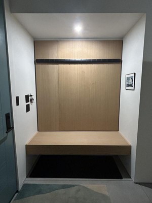 Très beau, pratique et facile à installer. Chacun à de la place pour accrocher manteau, sac, foulard, casquettes etc...