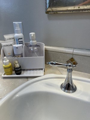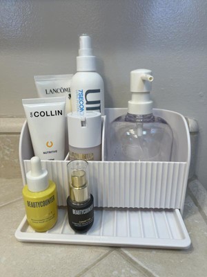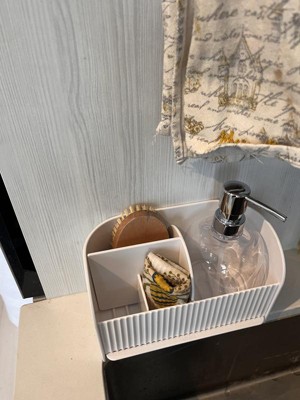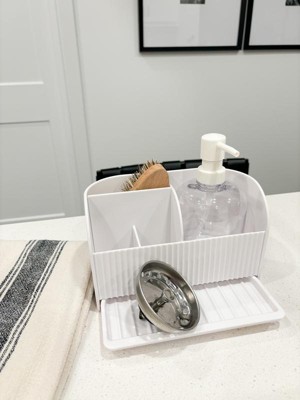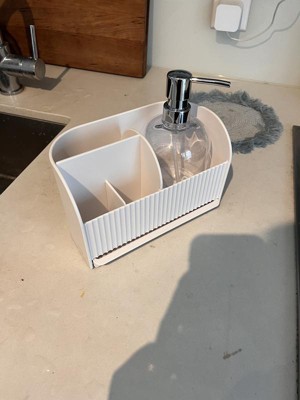 I love this sink caddy! So great for the kitchen, bathroom, or laundry room, to keep things around the sink organized. It's customizable with the removable divider, and the design is very aesthetic. It also comes with a soap pump, which is very convenient, but I just used my own bottle as I already had it filled. Overall a really functional and well-designed product.