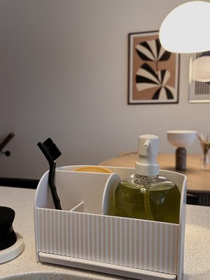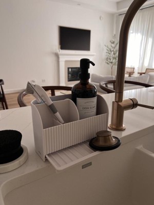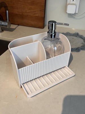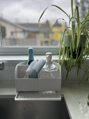 Such a cute and functional caddy for the kitchen. I love the multiple compartments to store various cleaning tools and the pull out tray for drainage.