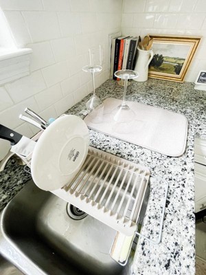I love this over the sink dish drying rack and mat, its a great space saver as well as its nice to not have your drying mat soaking wet! Great quality and function!