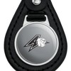 - QUALITY MATERIAL: Our durable round keychain is crafted from leather with a glossy resin-topped emblem featured design shown on one side. Approximately 1.5" (3.8cm) x 2.5" (6.4cm) in overall size, emblem is 1" (2.5cm)..