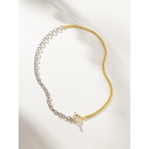 - Half gold curb chain and half silver cable chain
