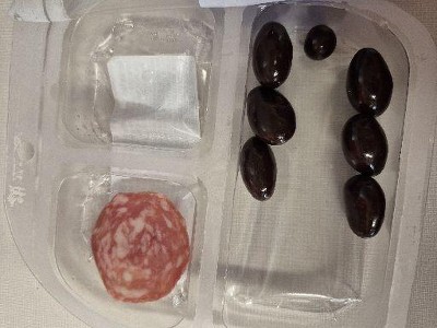 Salami tasted okay, the cheese tasted like it was expired, the salami & cheese slices amount didn't match. Should come with crackers but not too upset with the chocolate covered almonds