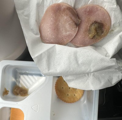 Rotten food. DO NOT BUY! I ordered this last week 10/10 and the date is perfectly fine (11/7) so I didn’t think anything of it. Well today I grabbed one for myself since I didn’t have time for lunch. Thank god I opened it and didn’t send this to my kids for lunch. Their is a jelly like substance at the bottom of the cheese, that already has white spots on it. And their is also white spots on the ham where you can see it’s going bad. This has been in my fridge since it was brought home so it’s not like I kept it out and cussed this. This is absolutely unacceptable quality for something that gets sent for kids lunches and you really can’t see inside it so you try and trust the dates. My kid has been weird about eating cheese when I send these and I though it was just her being picky but now I’m seriously questioning how many of these I have sent her for lunch that have been the same quality and just grossed her out or actually made her sick. Unacceptable target!! Food items need a better quality check. I’m so grossed out I’m throwing out every other target brand lunchable I purchased last week because I don’t want to risk my kid getting sick from rotten food!!!