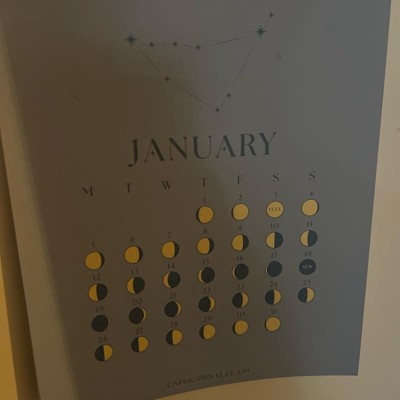 [This review was collected as part of a promotion.] This is a really unique calendar and very simplistic in that you aren’t going to be writing appointments and such in it. To me it’s more a visual piece that will hang on your wall so you can see the moon phase and upcoming phases as well as the current zodiac we are under. It’s beautiful, well made, and a great calendar.