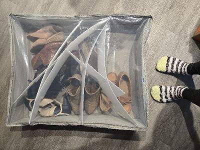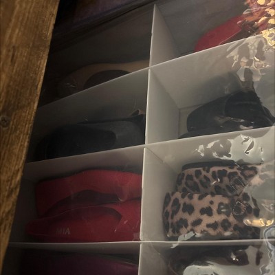 A: Hello Blublood - Thank you for your Question! The Shoe rack for underbed storage features multiple divided compartments and fits six pairs of shoes. Depending on the shoe type and size, it can be adjusted to fit more than six shoes as well. Hope this helps! - Eram