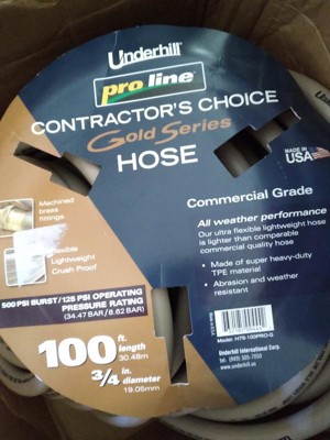 Underhill ProLine Gold Series 5/8 Inch x 100 Foot Heavy Duty Garden Water Hose
