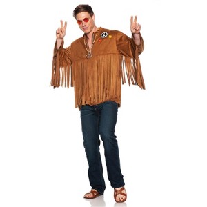 Take a trip back in time to the groovy era of the 70s. This is the perfect outfit to transport you back to the era of peace, love, and music. Featuring a faux suede shirt with embroidered patches, you'll feel like you're ready to hit up a music festival. The 70's shirt is the perfect choice for any retro-themed party or event. It's a great way to stand out in the crowd and make a statement with your unique style. And, of course, it's also a great way to celebrate the music and fashion of this iconic era.