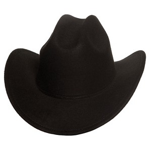 Yee haw! The Cattleman Cowboy Hat instantly gives you that Old West look. It features a thick felt curved-brim cowboy hat in a rich black for that "western bad guy" appearance. Wear with jeans and a western shirt for a quick Halloween costume, or just wear as a fashion statement when you want that cool western vibe. One size fits most adults.