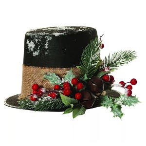 - FUN DESIGN: Top hat with burlap fabric band and attached decorative bells and holly. Made of 100% Polyester.
