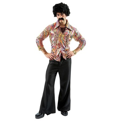 Get your groove on with our men's 60s shirt. Perfect for any retro party or event, this shirt will have you dancing all night long. Includes groovy orange button front shirt with collar. Care Instructions: Hand wash cold water with mild soap. Tumble dry low. For best results hang or lay flat to dry.