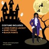 - COSTUME INCLUDES: This regal rocker costume features long purple jacket, shirt front, and black pants with silver buttons on the leg.
