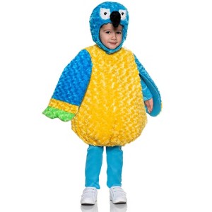 Let your little one spread their wings and bring the vibrant beauty of the tropics to life with the Tropical Parrot Toddler Costume, an enchanting and colorful outfit that is perfect for Halloween, costume parties, or any playful dress-up occasion. This delightful costume features a plush yellow swirl fur body that is soft and cozy, enveloping your toddler in warmth and comfort while mimicking the sunlit hues of a tropical paradise. The costume is designed with attached wings in a stunning array of blue, green, and yellow, creating a dazzling display of color that captures the exotic beauty of a tropical parrot's plumage. These beautifully crafted wings are plush and lightweight, allowing your child to flap and flutter with ease as they playfully mimic the joyful flight of a parrot. Completing the costume is a charming blue parrot head hood, which features a sweet and expressive face with big, friendly eyes and a cute beak, perfectly capturing the delightful character of these lively birds. The hood is designed to stay comfortably in place, ensuring it remains secure as your little parrot embarks on their tropical adventures. The combination of vibrant colors, soft materials, and playful design makes this costume a true standout, inviting endless fun and imaginative play. The Tropical Parrot Toddler Costume not only brings the magic of the rainforest to life but also offers a practical and easy-to-wear outfit, with its convenient design making dressing up a breeze for both parents and toddlers. Whether your child is exploring the backyard jungle or fluttering through a parade of costumes, this adorable parrot costume is sure to make them the center of attention, spreading joy and tropical vibes wherever they go. Dive into the vibrant world of the tropics and let your little one's imagination take flight with this delightful Tropical Parrot Toddler Costume!