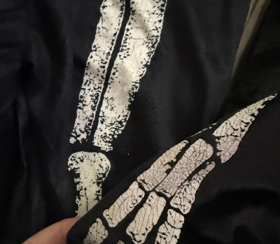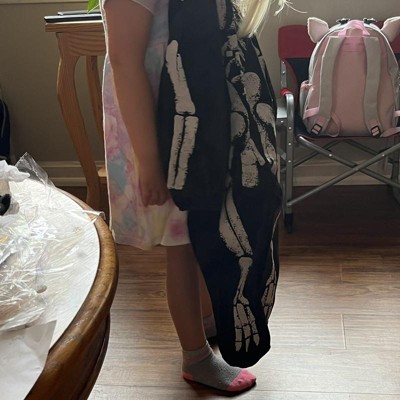 Your little one will have a blast wearing this awesome Dinosaur Skeleton Child Costume! This dino fossil costume features a cracked bone 3D puffed printed jumpsuit with attached feet. Complete your look with the included detailed plush hood and mitts. Made from a lightweight baby blanket material. Spacious enough to pull over warm clothes during cold weather. Hand Wash/Line Dry. Do not iron. Perfect for Halloween, themed family photos, parties, and any other dress up occasion.