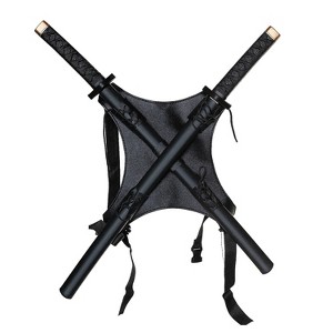• ADD AN ELEMENT OF SURPRISE: Use props like fake blood, toy weapons, or sound effects to create stunning effects and add a sense of shock or excitement to your costume.br • BRING CHARACTERS TO LIFE: Props and accessories worn by characters in movies, TV shows, and video games can help you embody the likeness and personality of your favorite stars, adding authenticity to your costume.br • COMPLETE THE OUTFIT: Accessories provide the finishing touches to your Halloween costume, elevating your look from ordinary to extraordinary, and allowing you to fully embrace your chosen character or theme.br • CREATE A UNIQUE DIY ENSEMBLE: General props and accessories offer endless possibilities for DIY costumes, allowing you to create one-of-a-kind characters, creatures, or outlandish personas that are entirely original.br br Product Description:br Faux-leather Ninja backpack with adjustable shoulder straps includes two (2) Katana swords and sheaths! Sword hilts have golden accents for an extra pop of color. Excellent accessory for your ninja costume as you head off for a night of trick-or-treating and fun. Shop a variety of ninja costumes to go with this backpack on our website. Made of lightweight safe plastic. Suitable for older kids, teens and adults.