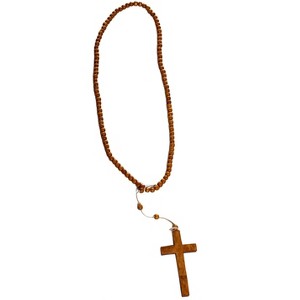 Complete your religious costume with an authentic touch by accessorizing with our Wooden Cross Necklace, an ideal piece for embodying the serene grace of a nun, the solemnity of a monk, or any other pious character. This thoughtfully designed costume accessory features a rosary-style necklace made from a series of brown wooden beads in an earthy finish that adds a touch of rustic elegance. The beads are thoughtfully strung together, offering a classic and timeless look that complements a variety of religious costumes. The focal point of this necklace is a beautiful wooden cross. This cross, suspended gracefully from the necklace, serves as a powerful symbol of devotion and faith, adding depth and authenticity to your portrayal. Whether you're dressing up for a theatrical performance, a themed party, or a Halloween celebration, this Wooden Cross Necklace provides the perfect finishing touch to your outfit, allowing you to embody the spiritual aura and solemnity of your chosen character. Lightweight and comfortable to wear, this necklace is a versatile accessory that effortlessly blends style with symbolism, making it a must-have addition to your costume collection. Embrace the timeless beauty and spiritual essence of this wooden rosary necklace and let it elevate your costume to a higher level of authenticity and elegance.