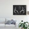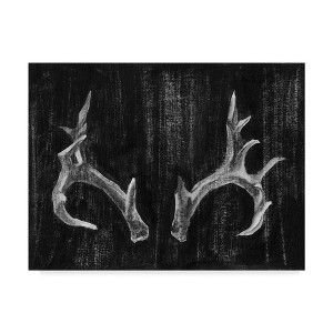 This ready to hang, gallery-wrapped art piece features a black and white painting of antlers. Giclee (jee-clay) is an advanced printmaking process for creating high quality fine art reproductions. The attainable excellence that Giclee printmaking affords makes the reproduction virtually indistinguishable from the original piece. The result is wide acceptance of Giclee by galleries, museums, and private collectors. Gallery wrap is a method of stretching an artist's canvas so that the canvas wraps around the sides and is secured a hidden, wooden frame. This method of stretching and preparing a canvas allows for a frameless presentation of the finished painting.