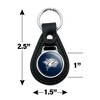 - QUALITY MATERIAL: Our durable round keychain is crafted from leather with a glossy resin-topped emblem featured design shown on one side. Approximately 1.5" (3.8cm) x 2.5" (6.4cm) in overall size, emblem is 1" (2.5cm)..