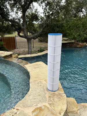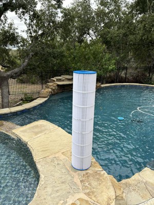 [This review was collected as part of a promotion.] We are empty nesters with our first pool. We back up to a dusty open space and the pool is surrounded by messy live oak trees. We knew that this filter was doing its job, but we didn’t really know how well it worked until or auto pool clearer broke. This durable filter has 176 pleats that surround a hard plastic cylinder filled with holes. The hard working filtration fabric is made by Reemay. It has more surface area than some other filters. I like that it is made in America as well. What I really like is the clean pool with clear water.