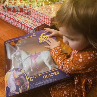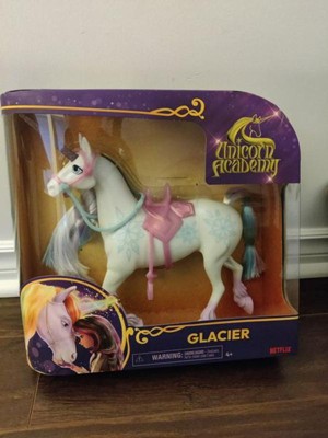 Complete your Unicorn Academy doll collection with Layla’s unicorn, Glacier. Inspired by the NETFLIX animated show and best-selling book series where friendship reins, this 11-inch unicorn toy brings headstrong, powerful Glacier to life. Beautifully detailed, Glacier features a pearlized body, snowflake Ice Magic markings on her side, a majestic glittery horn, colorful mane and tail, and removable bridle and saddle doll accessories for added play. Gently move Glacier’s head to bring out her personality and relive the magical bonding experience between unicorn and rider with Layla. Brush Glacier’s soft mane and tail with Layla’s styling tool (not included, sold separately with doll) and ride into adventure to protect Unicorn Island and its magic. For more ways to experience Unicorn Academy with your favorite characters, look for all of the rider dolls and their unicorns (each sold separately) and expand your world. The magical bonds between Unicorn Academy students and their unicorns will spark endless imaginative storytelling. For kids who enjoy unicorns and horse toys, dolls & accessories, doll house play, collectibles, plush toys and more, Unicorn Academy toys are fun birthday gifts for girls or gifts for any occasion. Bring home the magic of Unicorn Academy with Glacier. Includes: 1 Unicorn, 1 Removable Saddle, 1 Removable Bridle