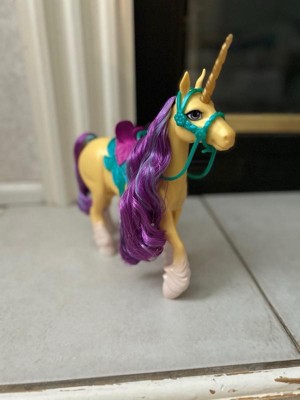 [This review was collected as part of a promotion.] My daughter loves this unicorn toy. It is great for pretend play. It is made well and feels very durable. She especially loves the bright purple hair. This toy is very cute.