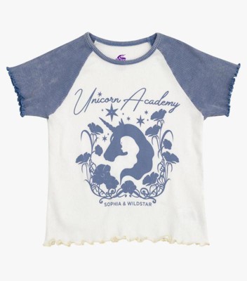 Experience the magical world of Unicorn Academy in this cute short sleeve shirt! This comfy tee features a stylish mineral wash look and vibrant Unicorn Academy artwork of favorite characters like Sophia and Wildstar that your little girl will love to wear! Made of a soft material for all day comfort, this fashionable Unicorn Academy shirt is part of the perfect outfit for all day fun and adventure!