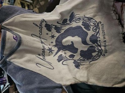 Not the same shirt in the picture. The one pictured is pinkish purple with a unicorn with rainbow hair. The one I received is blue and white and a totally different design on the front with one color print and a different image of Sophia and wildstar’s profiles inside one another.