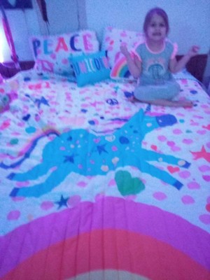 [This review was collected as part of a promotion.] My little girl absolutely loves this UNICORN RAINBOW-QT-WHITE/MULTI comforter set it colorful and comfortable and I love the little pillows that comes with the set. You can not go wrong with this set it's perfect for girls of all ages.